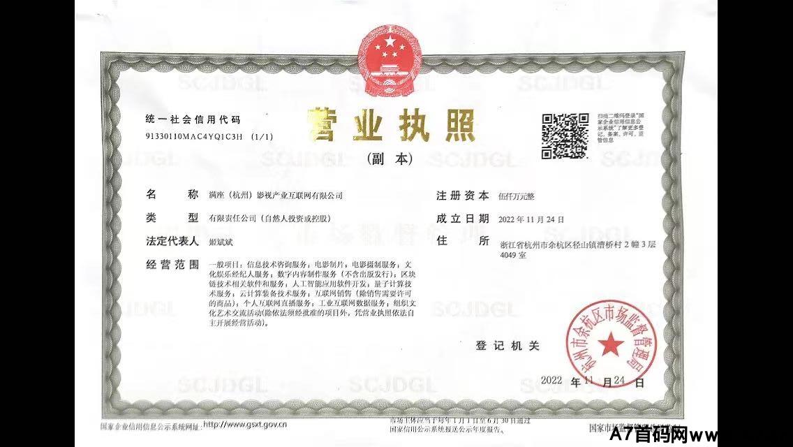 今后满座是由四家公司【满座(杭州)影视产业互联网有限公司、满座(济南)网络科技有限公司、霍尔果斯直中取影视产业互联网有限公司、霍尔果斯今後满座影业科技有限公司】联合开发的项目,运营主体为满座(杭州)影视产业互联网有限公司。