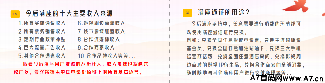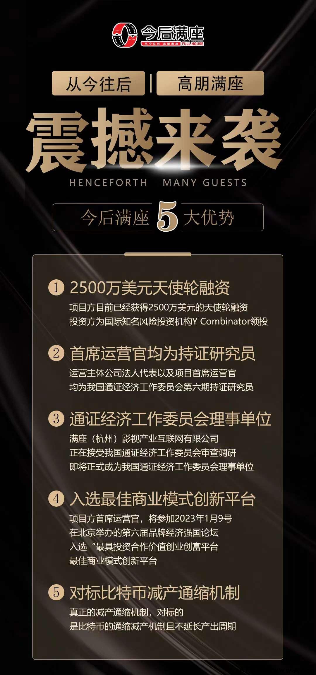 在2022年五月份,人力资源社会保障部、**发展改革委、财政部以及税务总局,四部门联合发文宣布,对十七个困难行业实施财政优惠政策支持,在这十七个被官方定性为特困行业的列表中,“**电影行业”赫然在列。而今后满座就是在此背景下诞生的——全g首款电影行业价值链通证平台,今后满座将竭力打造线上服务影业的品质地标。与此同时,今后满座内所有为**电影发展做出贡献的用户,均可参与今后满座的经营价值分配,将与用户和上下游及合作伙伴,实现“共建共享,共同富裕”,促进我g早日实现电影强g的目标。