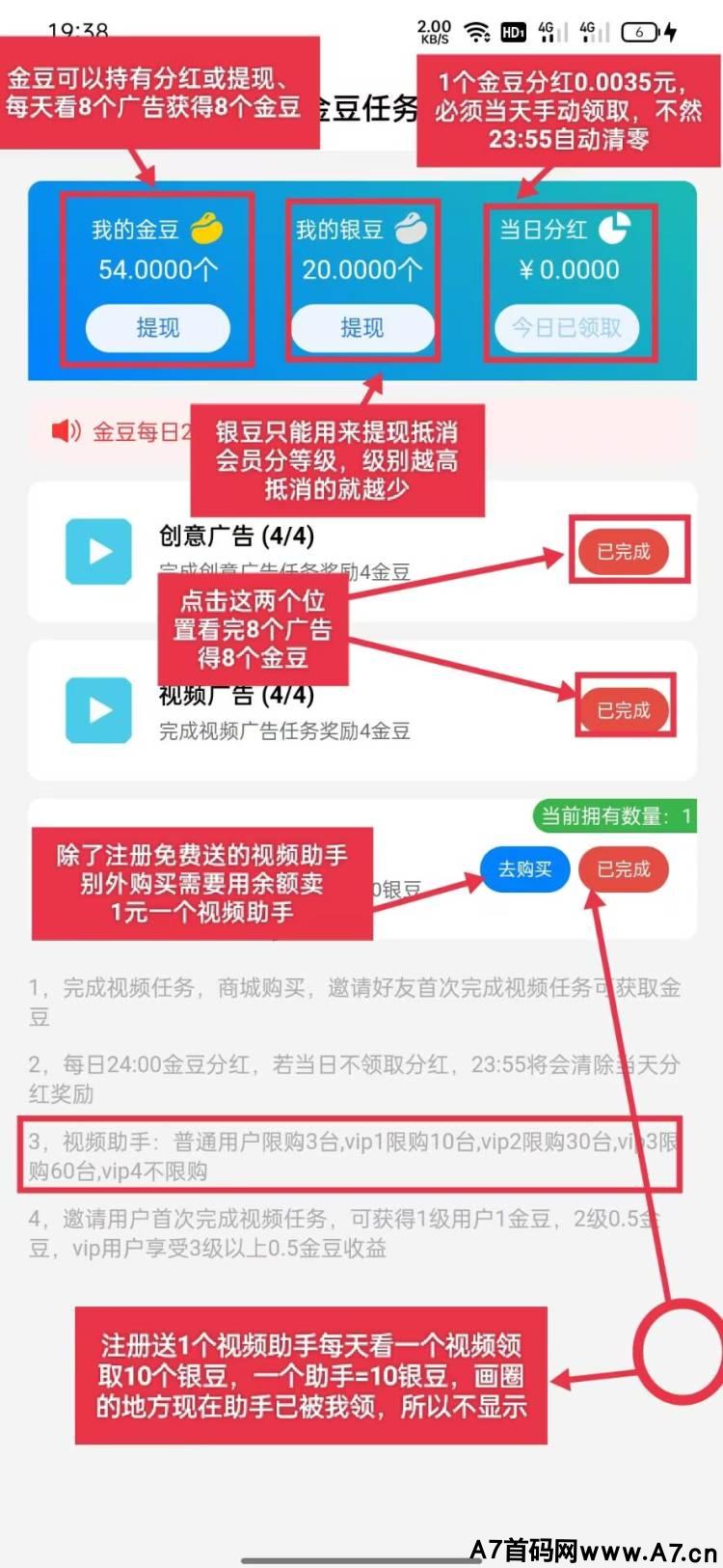 (金豆产出分h到余额,余额可换购视频助手产出银豆)