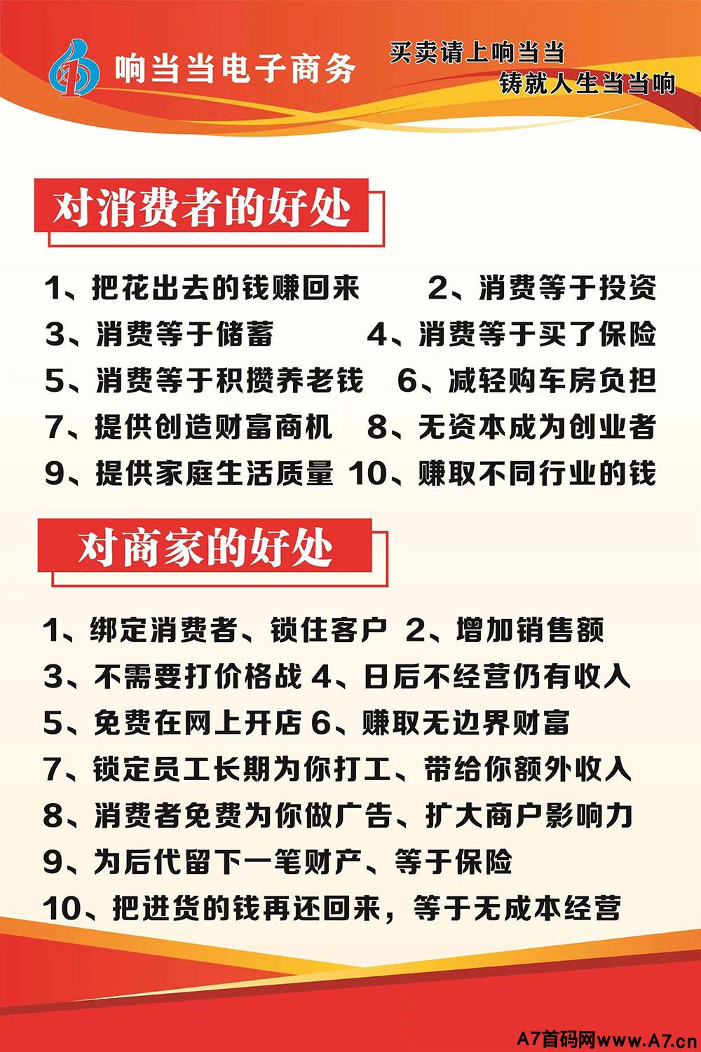 公司以聚人、聚智、聚财原则,谋求发展。响当当电商平台、通过线上线下销售商品与服务,有平台自营区、有商家入驻商品、有第三方对接合作,有精准引流、积分商城、附近商圈、振兴三农、便民服务|以及多项利民服务等:携手各界精英与公司共创辉煌!