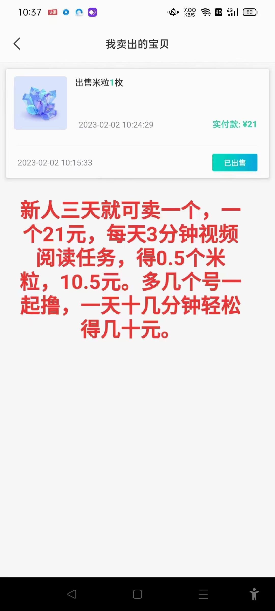 正文 米虫,来来来 猛干才有出路 V评论者 /2023-02-04 18:11:33/1.13 K阅读 0204 新人每三天就可卖一个,今天一个23米 ,每天3分钟视频阅读任务,得0.5个米粒,11米 ,多几个号一起撸,微信扫码下载,记得实名认证。我的-邀请好友-我的好友进去填一下邀请码 :MjIzMDA2MA==, 不填收益会低20% 切记!VX:w3345070,下级加我。