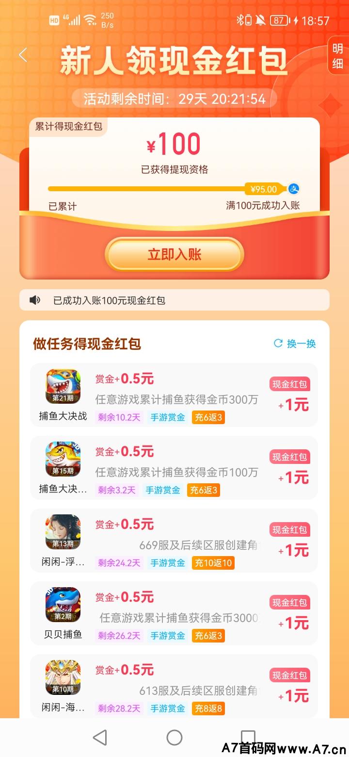 最新试玩,只需要下载对应**,挂机3分钟,然后领取奖励就可以,实时到账。
