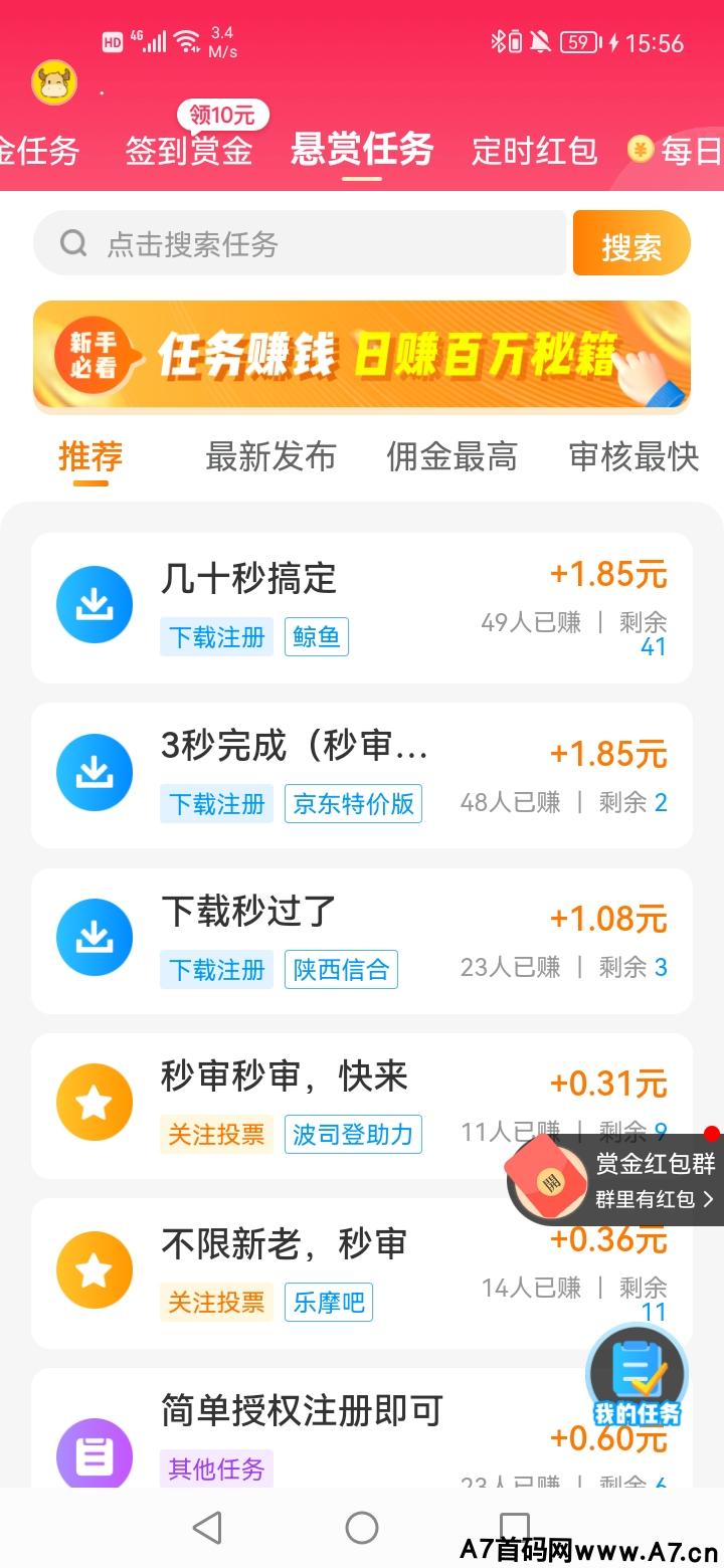 平台赚钱分为:**下载试玩3分钟,悬赏任务奖金,游戏试玩奖金,推荐一人保底3元,人越多金额越大,100元新人任务超简单。