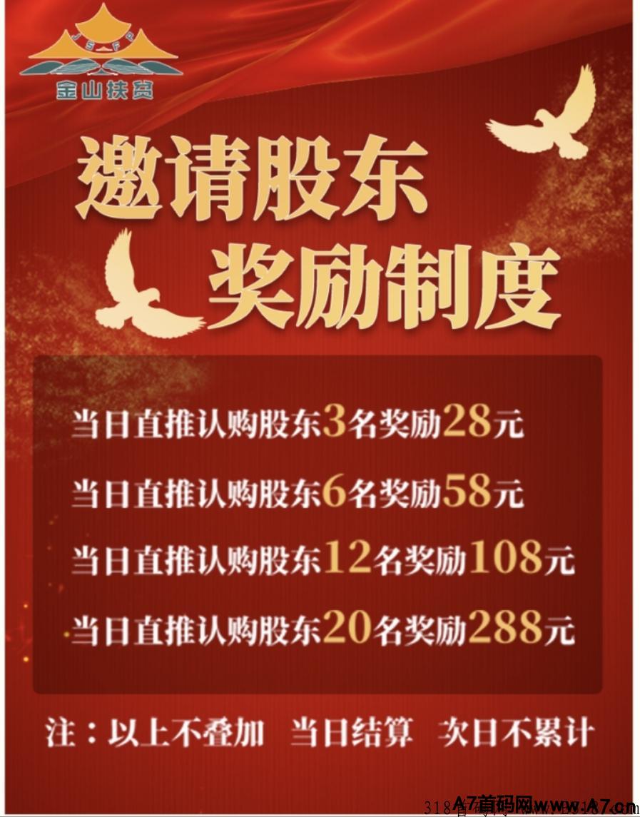 注:以上不叠加当日结算次日不累计!累计直推邀请股东专项补贴奖励制度