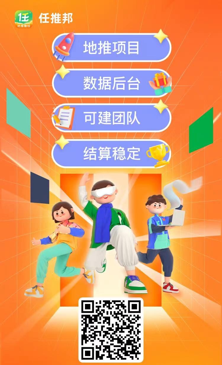 如果你不喜欢做任务,还可以推广任推邦平台,赚**提成,建议提成设置为1%-2%,细水长流,这种赚钱方法相对前两个比较简单,直接推平台就行,而且还可以打造团队赚**收益,比较适合网推用户和团队长用户。