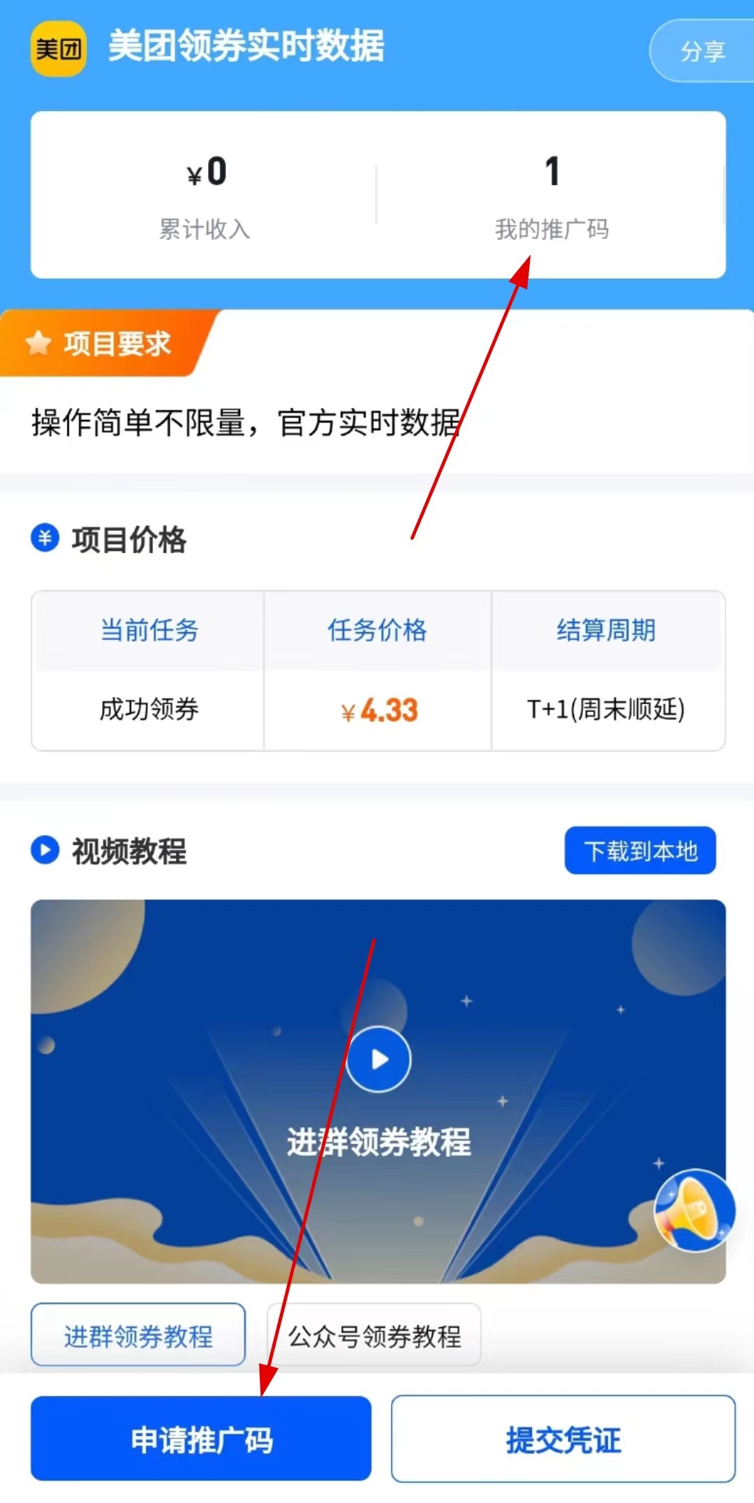 进来之后有一个图文教程,跟着教程一步一步做,把需要的截图截下来,然后点击右下角的提交凭证即可,审核通过之后钱就到账号了,直接提现即可。