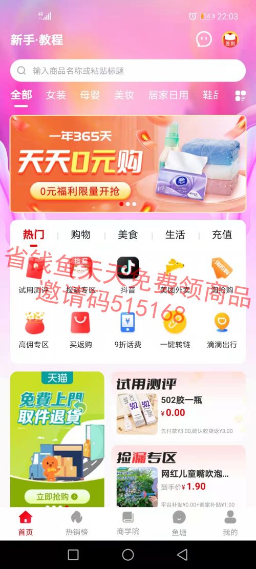 省钱鱼,每天免费领商品地摊进货,不拿白不拿,撸货,每天可提现到帐无限制0投资