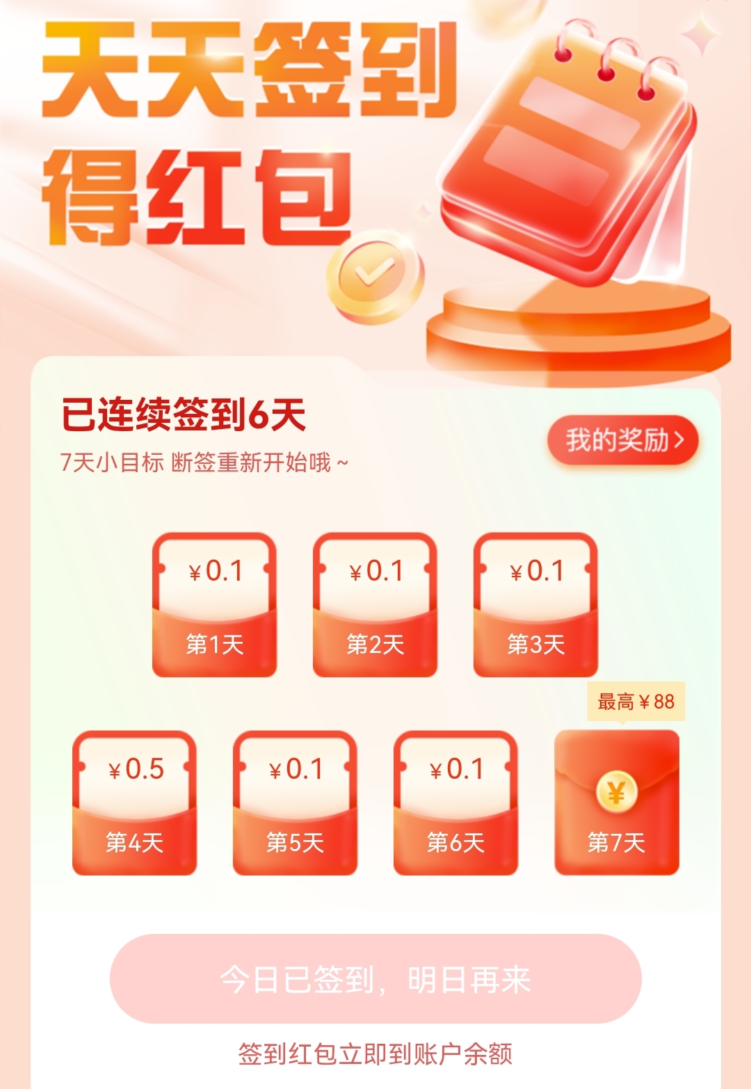 天天签到领红包最高88元,满一元即可秒提现!前面介绍了热度星客,很多人以为只是一款抖音购物返利平台,除了新人免单外,之前的转链红包也结束了,似乎不购物或邀请,想要赚钱很难实现,其实平台还要签到领红包活动!