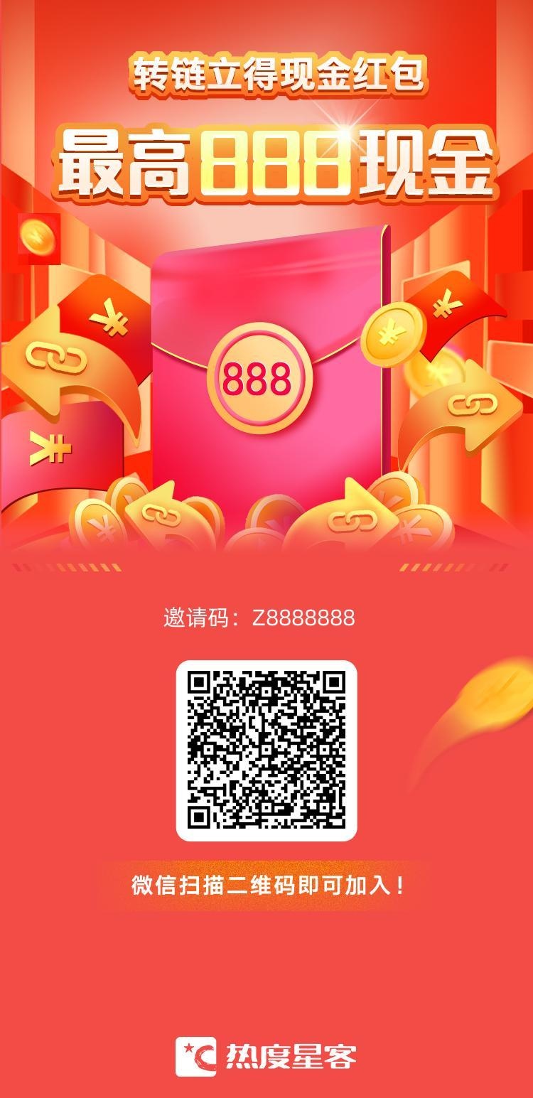 活动很简单,每天登录热度星客,在首页,右上角签到领红包里,点下签到就可以获得0.1-88元的红包!