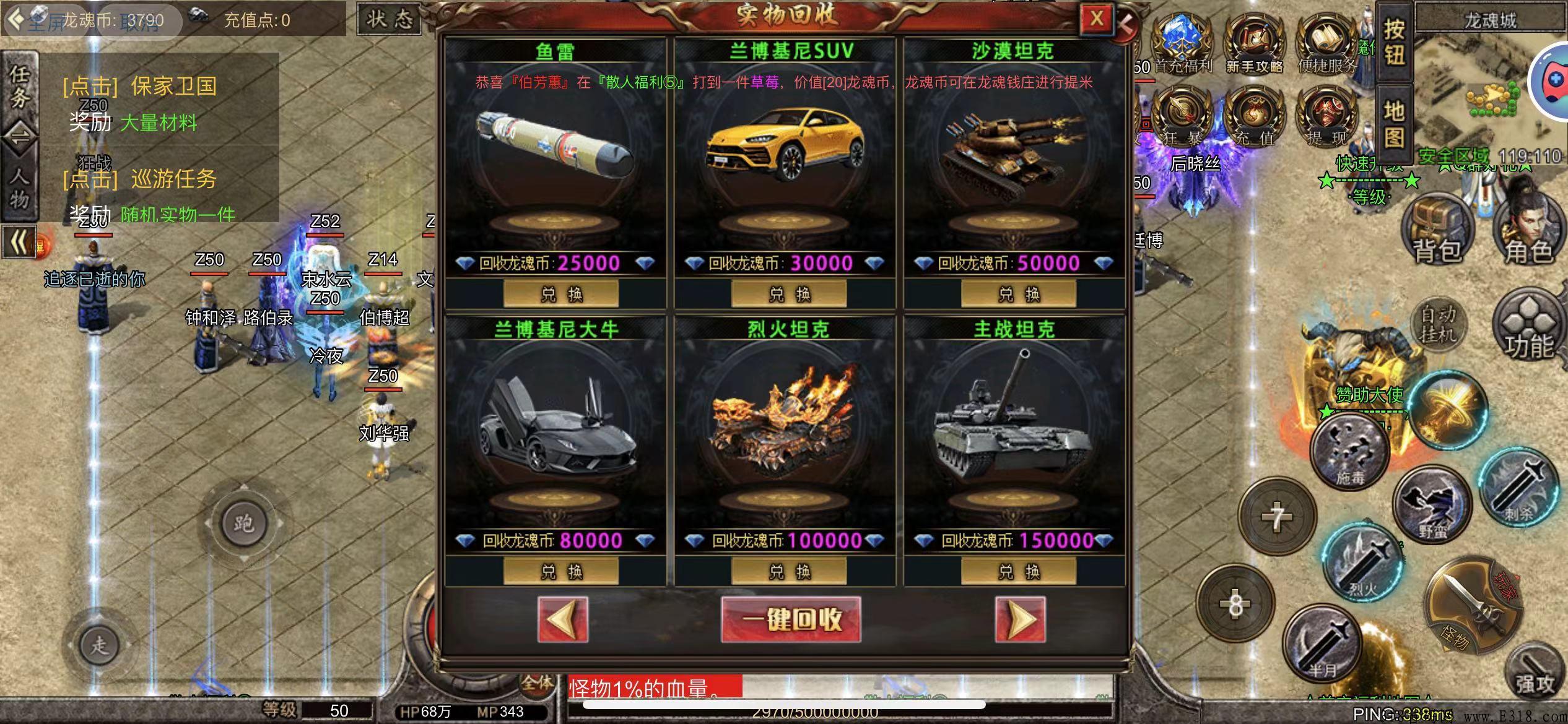 3.打金实物在线回收龙魂币!