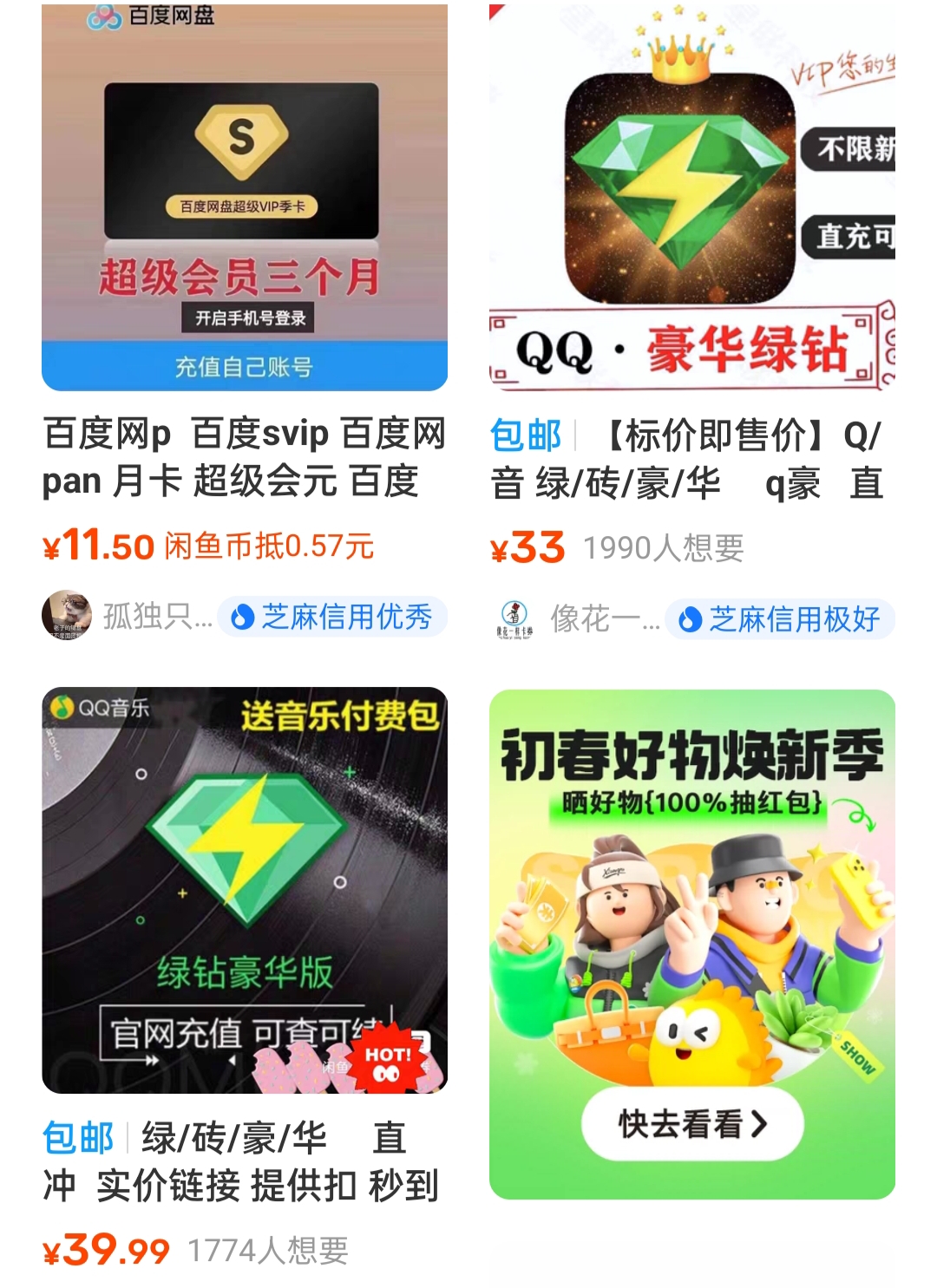 代充各种会员的平台怎么找?代充业务通常比直充更加优惠,不知道大家都听说过没有,其他几乎所有**都有代充业务,比如最常见的话费充值优惠、水电费充值、油费充值、商超卡券、影视会员、音乐VIP等等,如话费目前市面上最低价可以在9折左右,其他的会员资源甚至能达到3-5折