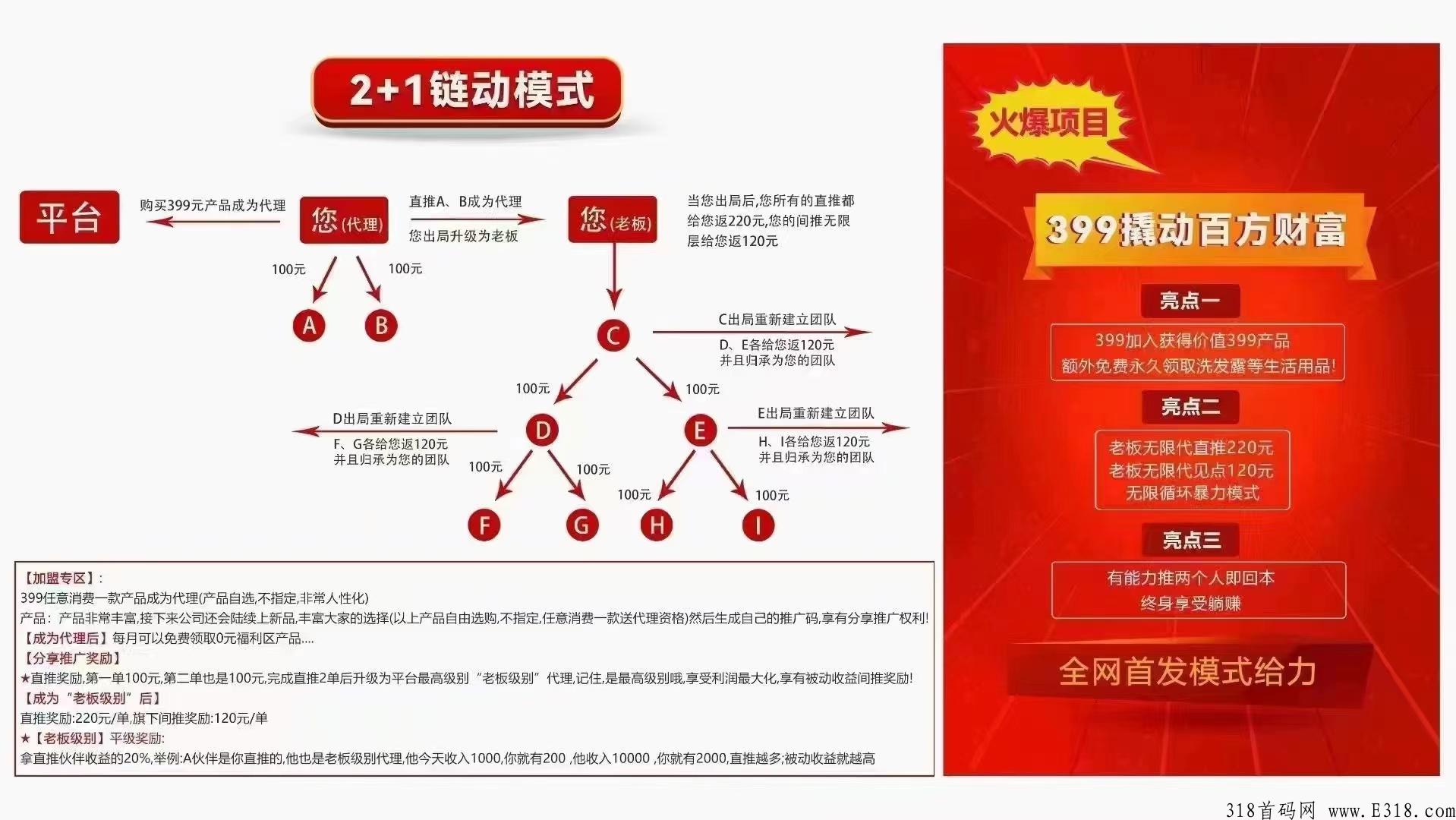 (特色优势:2级分润,**拿钱)只要有人成为老板,就帮你留下2个代理,继续帮你赚钱,永远也不会断层,不用担心没有人做市场)