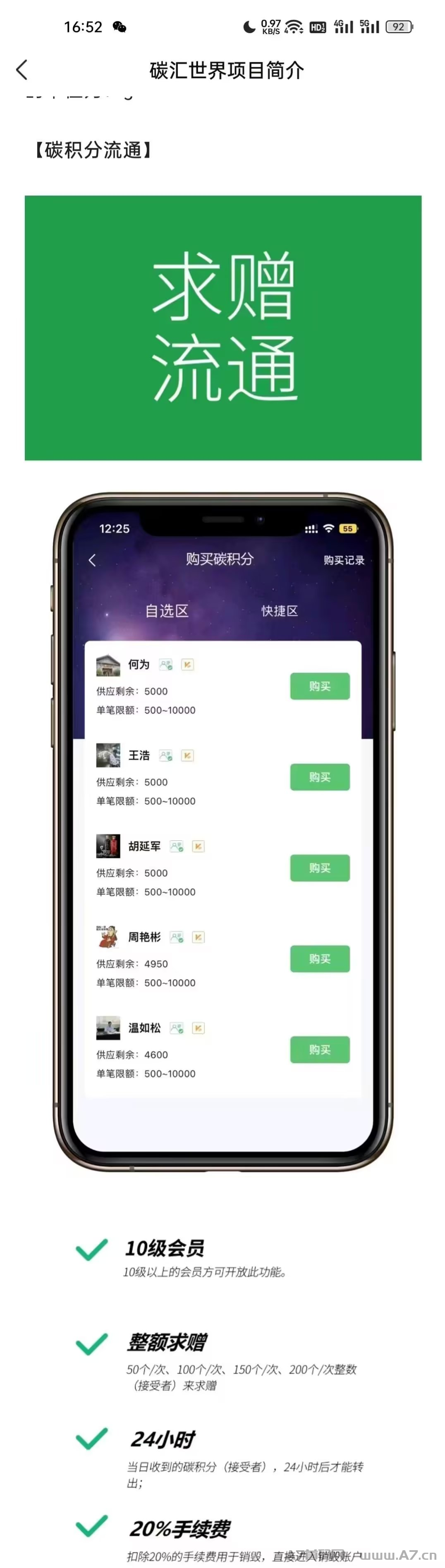 正文 碳汇世界,老公司出品 星河首创联盟 V评论者 /2023-02-22 22:08:14/2.23 K阅读 0222 碳汇世界运营6年酒链老公司出品扶持看图 0撸起手后面会出交易所玩家之间交易碳宝交易所出来了发群里0撸起手,每天10广告完成任务纯0撸 升级消耗碳宝