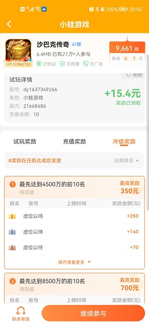 寻味这样的战力也是日夜不断的参加活动达到的,个人觉得真没必要去充值冲击奖励,毕竟游戏公司能设定这样的奖励,都是计算好的,不会让你那么容易拿到的,一般拿个前3-5档位奖励即可!传奇游戏每7天更新一期,一个月可以玩四期,不充值只拿前3-5档位奖励也有8.4—14.4元,而且会很轻松!