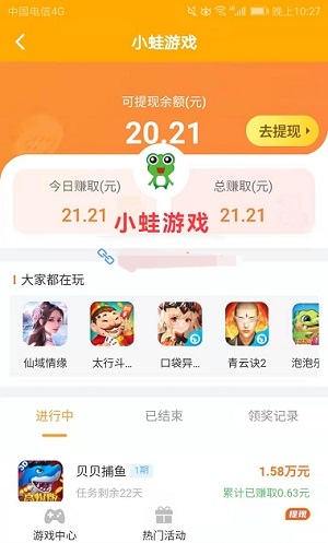 如果你想赚的更多,可以去试试类似游戏热血之刃,同样也是传奇游戏类型,更多精彩游戏试玩赚钱,可以去小蛙游戏看看,里面游戏简单,单价高,分类明确,1元就可以提现,亲测一天随便试玩游戏就可以赚20,收益多少全取决于你的努力程度!