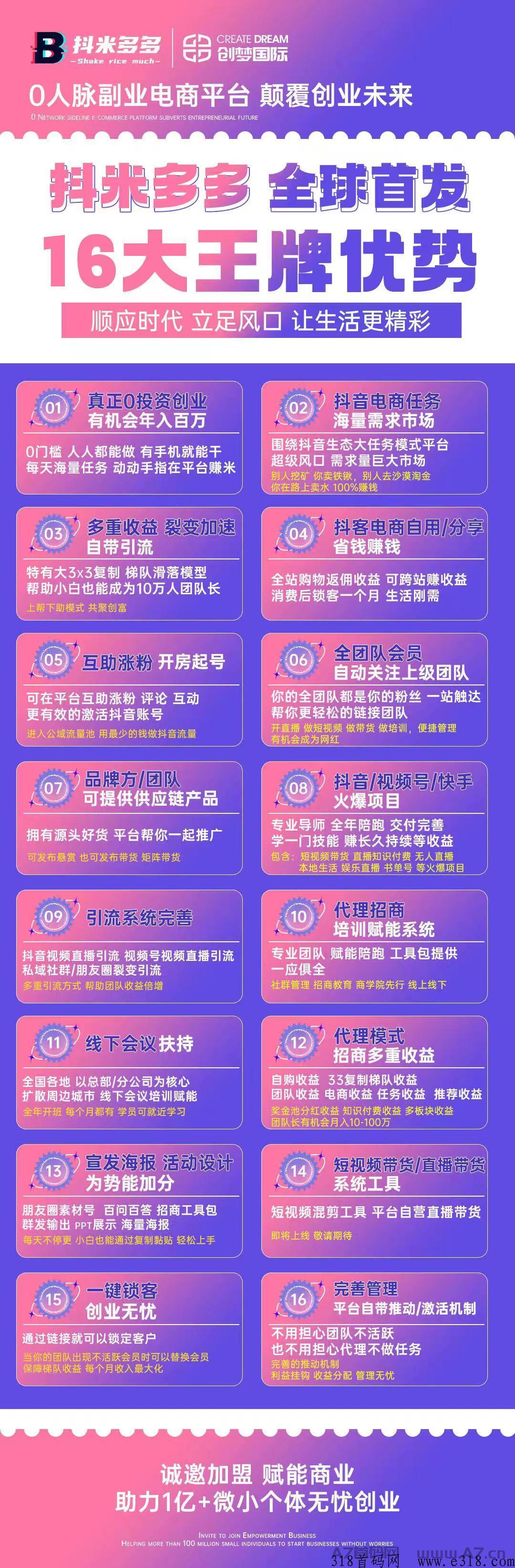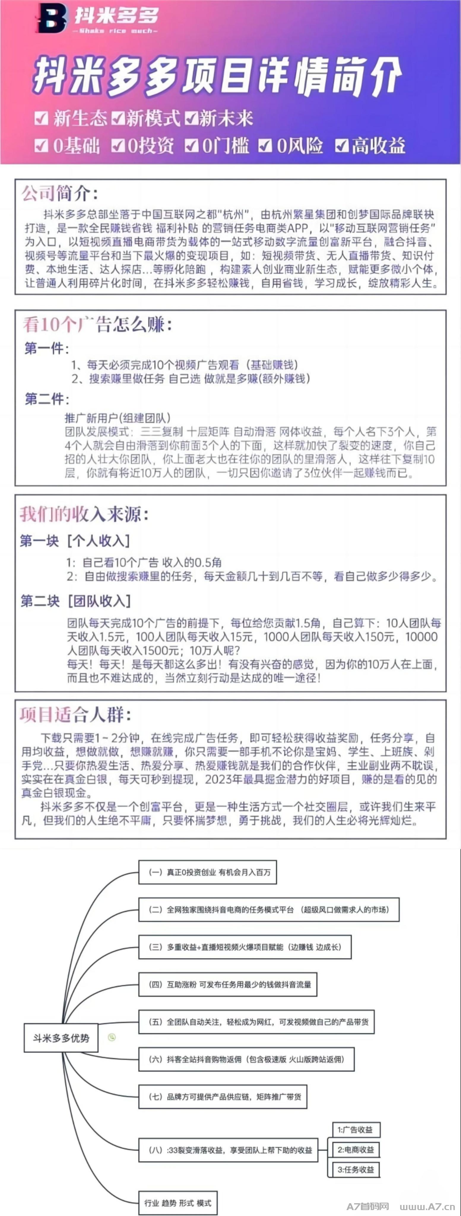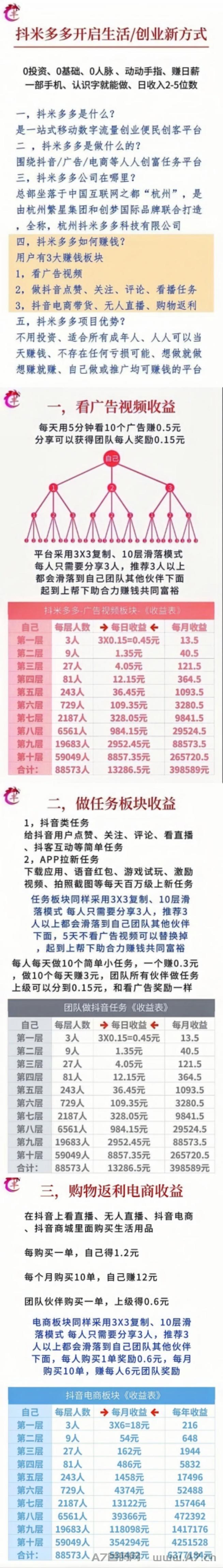 正文 【抖米多多】0撸自动滑落,三三复制 金女士 V评论者 /2023-02-28 10:15:44/1.73 K阅读 0228 【抖米多多】超强0撸,三月初左右上线,预热中!三三复制,10层滑落,一共9万人!【第一板块】广告收益,滑落9万人,每人每日给你贡献0.15元=日入1.3万元!【第二板块】电商收益,滑落9万人,每人每月给你贡献12元=月入53万元!【第三板块】抖音点赞关注,滑落9万人,每人每日给你贡献3元=日入1.3万元!三大板块,各不干扰,一次锁粉,享受三份收益!