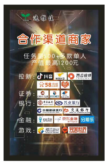 我们提供充场拉新,全类目,全网最高佣金价格,不抽佣,一手渠道资源 ①合作之后,公司会给你建一个群,我们会有五六个工作人员扶持你去做的,里面有客服,老师,招商经理,结算专员、对账财务、主管领导,其中也有培训你兼职做任务的,不管你招多少个 ②工作室选址,运营,维护,做单,招聘方案,渠道对接,网推搭建等等一系列全流程,多对一培训及售后