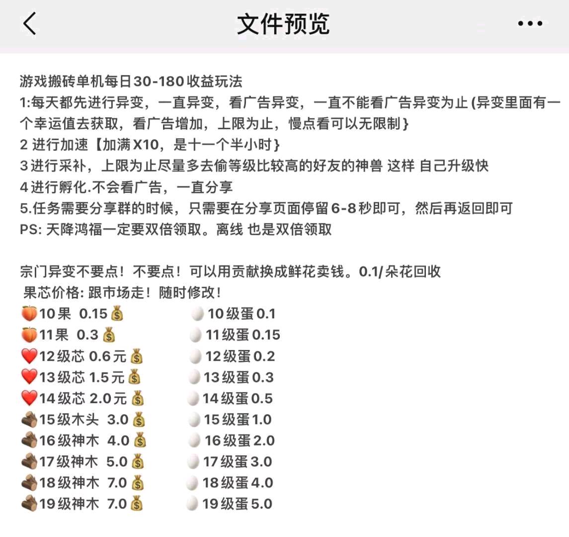 正文 游戏小程序 正规推广赚佣金的平台 V评论者 /2023-03-04 08:06:05/3.23 K阅读 0304 游戏小程序单机20-80项目介绍简单的合成类游戏,进去玩2分钟一看就明白合作要求个人单刷,团队多开收益利润20-80费用说明免费扶持培训自己摸索就行 资源图片: