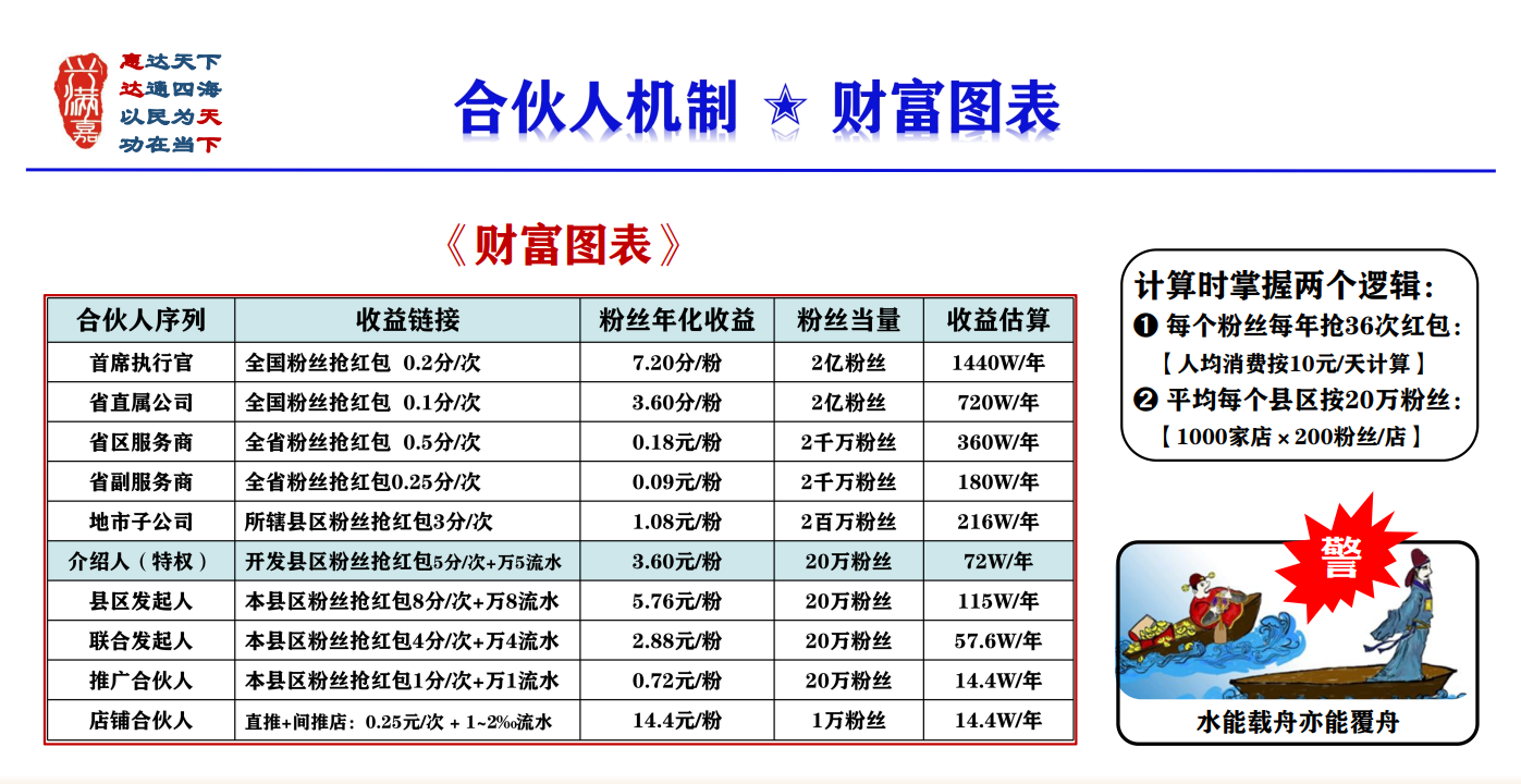 县区发起人年化收益115万元左右,县区联合发起人年化收益57.6万元左右,县区推广合伙人年化收益14.4万元左右。合伙人机制多劳多得,可多重身份多重收益叠加,通过开发县区可晋升地市、省区、省直等,链接更多收益。所有合伙人都可以行使介绍人特权,每介绍一个县区服务商年化收益72万元左右。开发落地即可实现管道收益、长期收益。