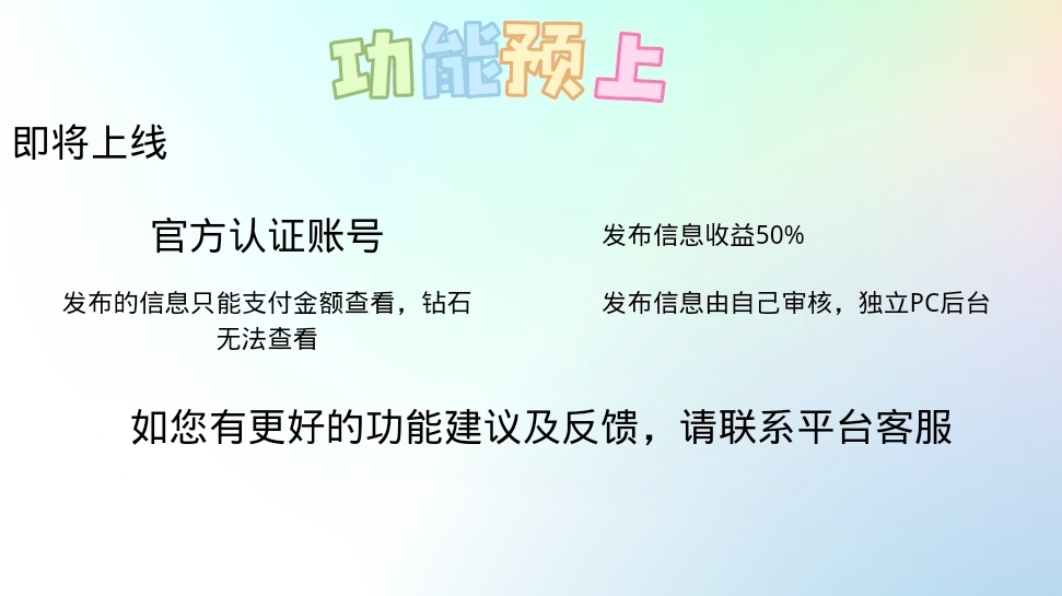 官方认证:例如红娘、表白墙、线下摊主认证(发布纸条的50-70-90)%为其收益