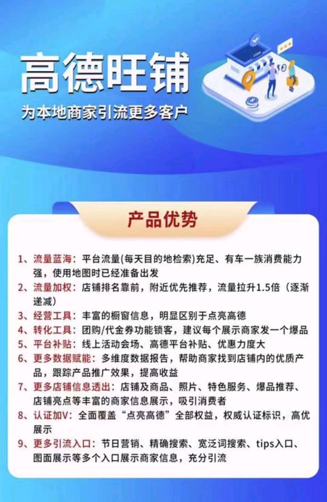 正文 高德地图旺铺推广 正规接单赚佣金的平台 V评论者 /2023-03-04 08:36:02/2.05 K阅读 0304 高德旺铺推广项目介绍高德旺铺是高德地图平台的流量产品,与阿里强强联合!!主要通过搭建线上店铺的形式,给实体店铺做竞价排名和引流推广,品牌知名度高,接受度强!长期稳定,有管道收益!结算稳定。合作要求寻省会城市及地市合伙人和代理商。收益利润每人单日产值约400-600。费用说明合作方式灵活,提供客户资数据,培训资料。扶持培训可到公司培训和实操。 资源图片: