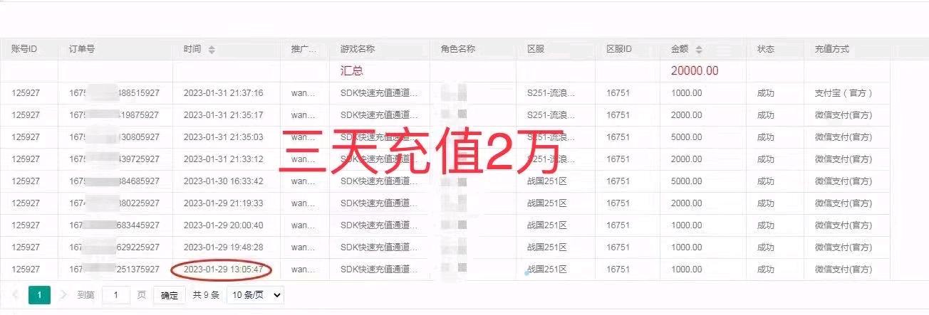 本公司是游戏运营总渠道商,公司有千款游戏可以运营,采取的是点位分佣的模式,游戏不同点位不同,可以从游戏后台直接提现。我们有多个管理后台,让你随时管理与查看经营情况,多款游戏随时操控。游戏里的大佬非常多,一个新玩家入游三天充值2万,轻松纯赚1万多,下面图片有数据截图,靠事实说话。