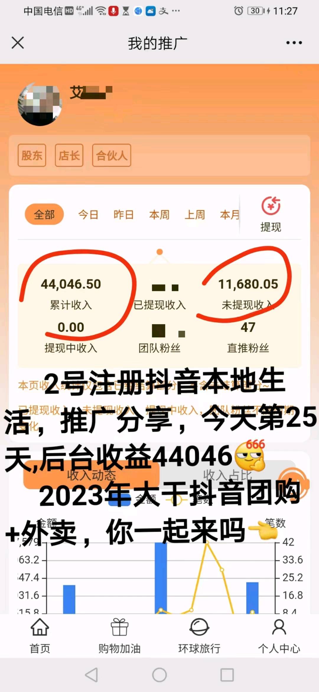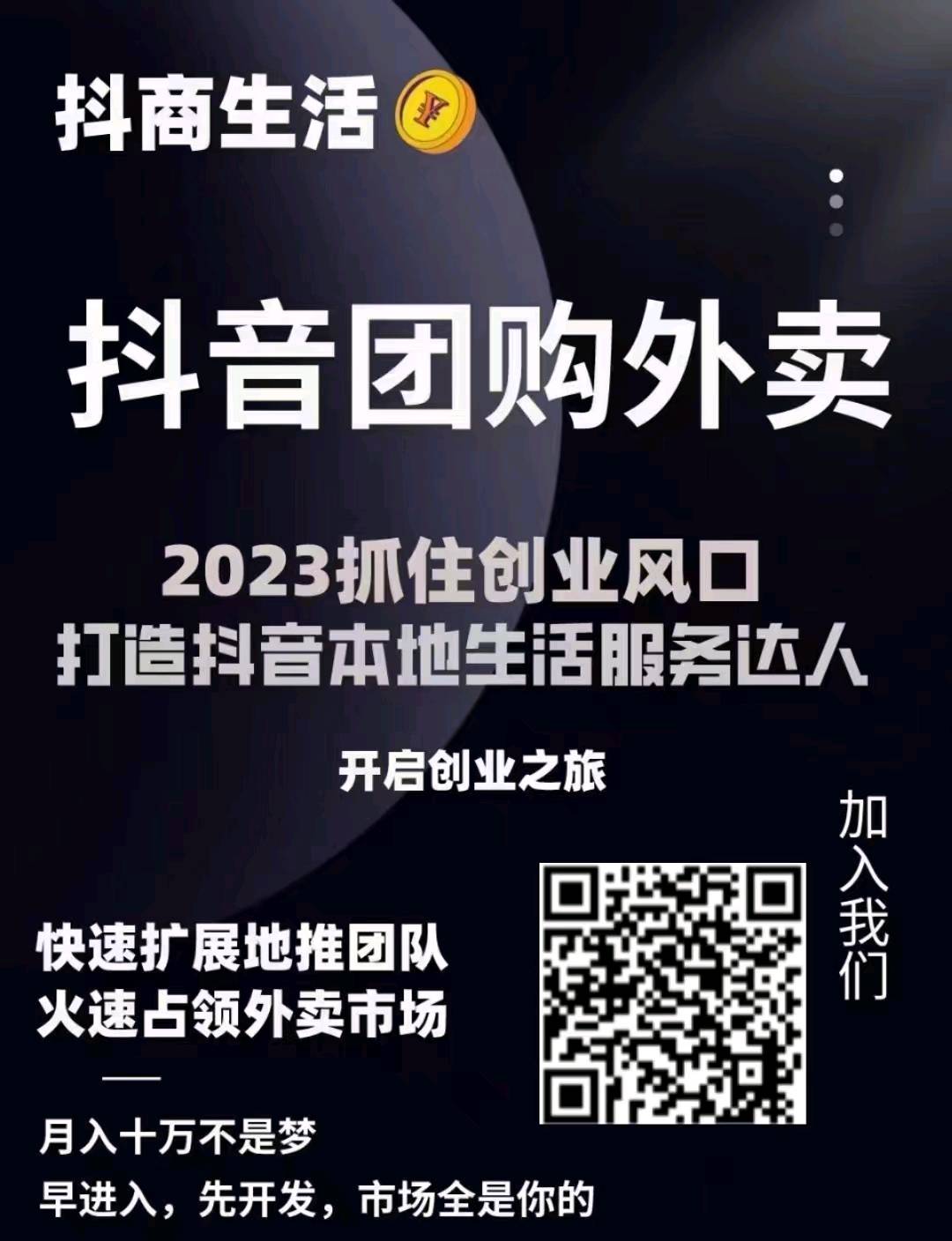 2023怎么赚钱? 干抖音团购外卖‼️ 2023抖音要跟美团正面竞争 对接100家店 轻资产创业 成为100家连锁店的老板 一家店一个月团购订单1万元 服务商抽佣7% 一个月收入700*100=70000元 一年收入840000元! 限时政策只需680抢购大礼包 就可抢到抖音服务商(店长)名额 名额抢完恢复3000元! 回复【2023888】 确认抢占名额 或朋友圈扫码付款680抢占店长资格!
