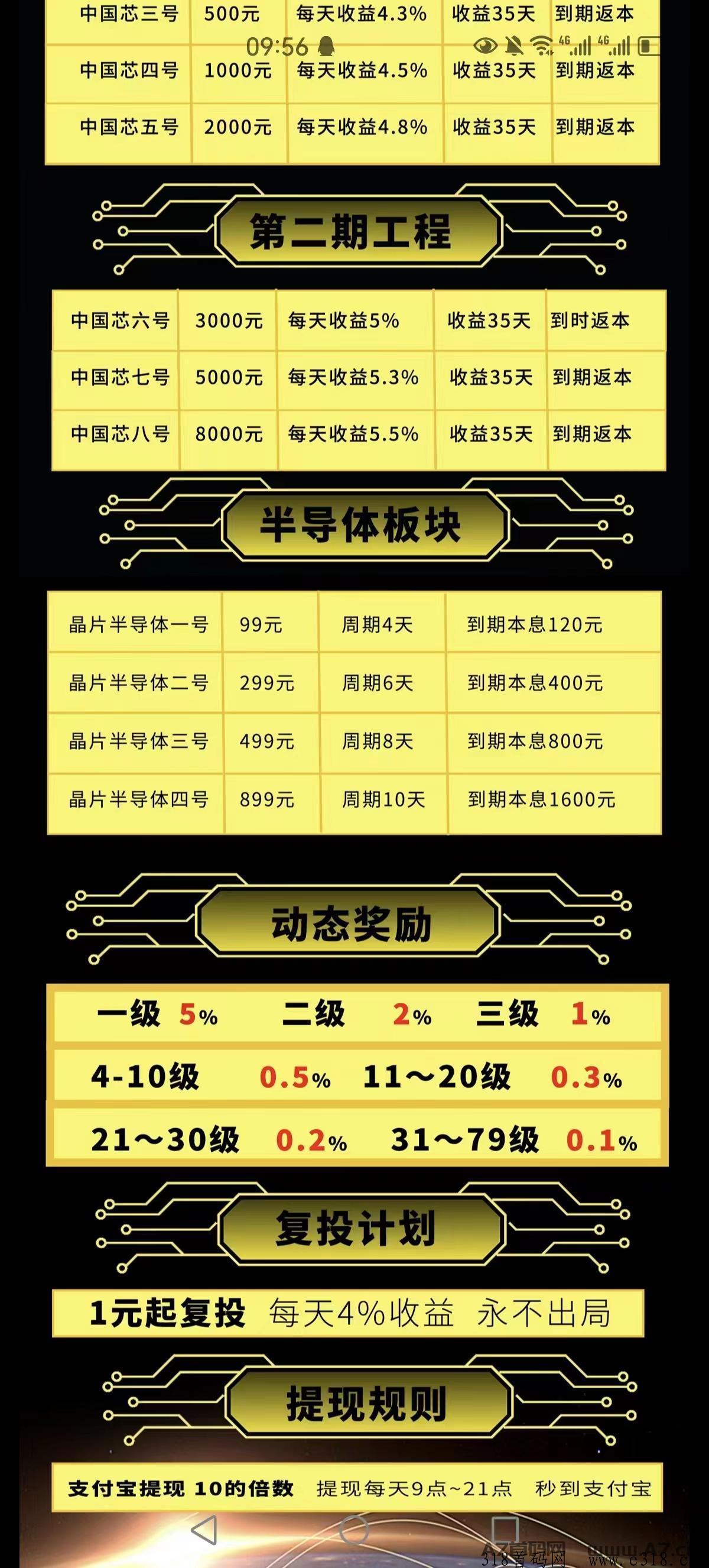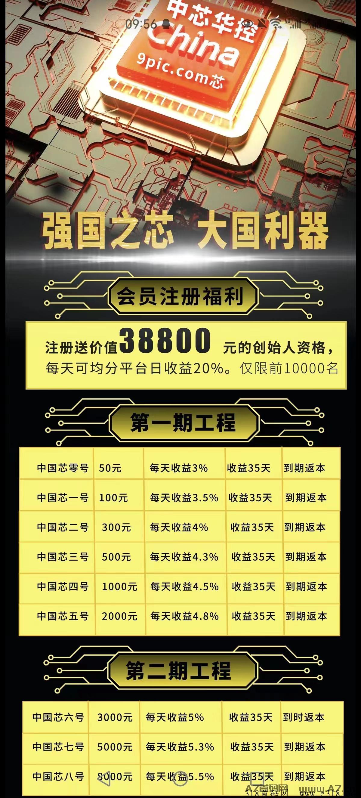**芯六号 3000元 每天收益5% 收益35天 到时返本