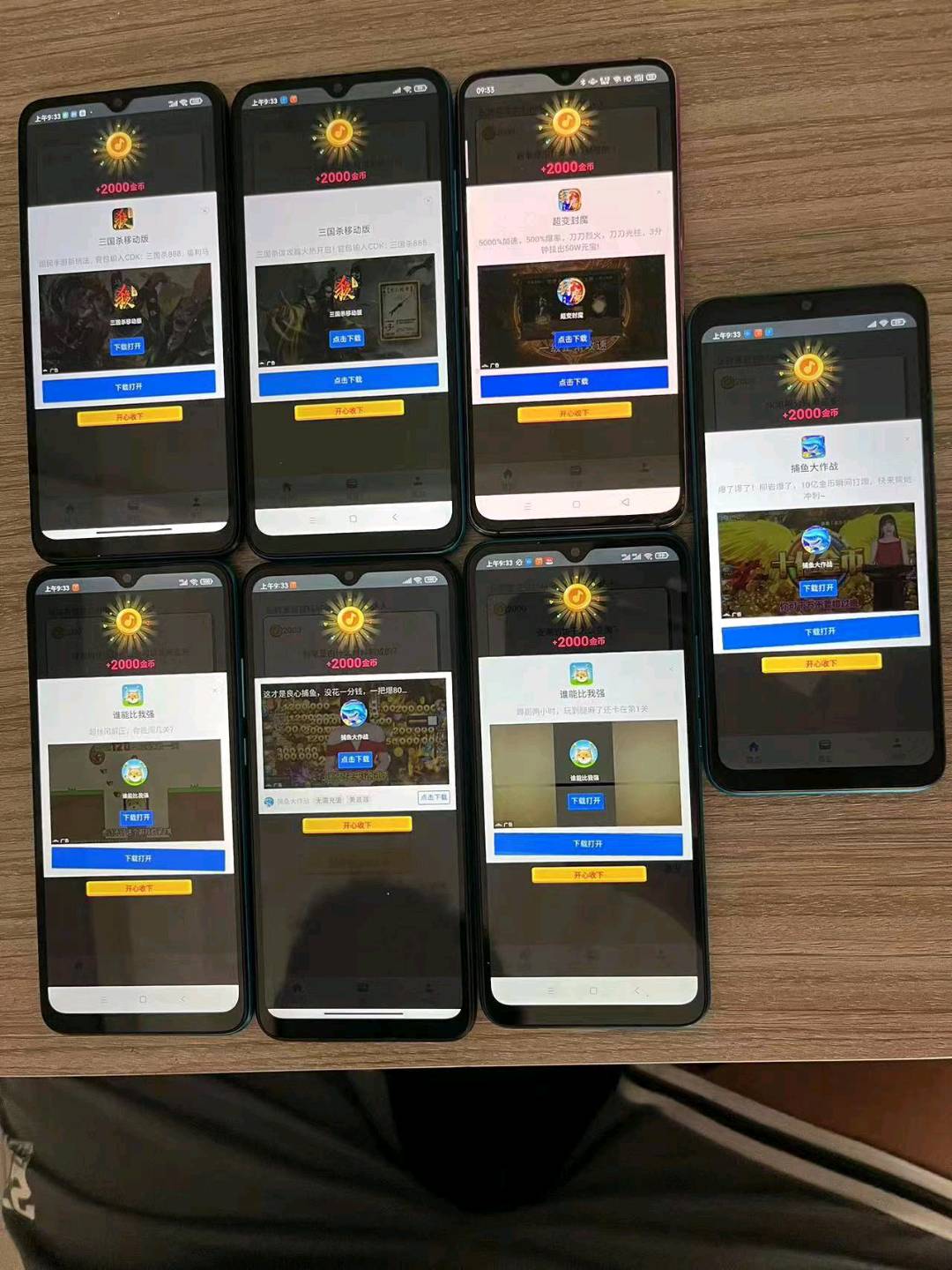 有4个app(前期上两个,后期四个),每个app每天可以刷125条广告视频,正常每条视频时间为30-40秒,每条广告视频2000金币(折合人民币2毛钱),意味着每个app收益为25米每天,两个app加起来50米。可多台手机操作。