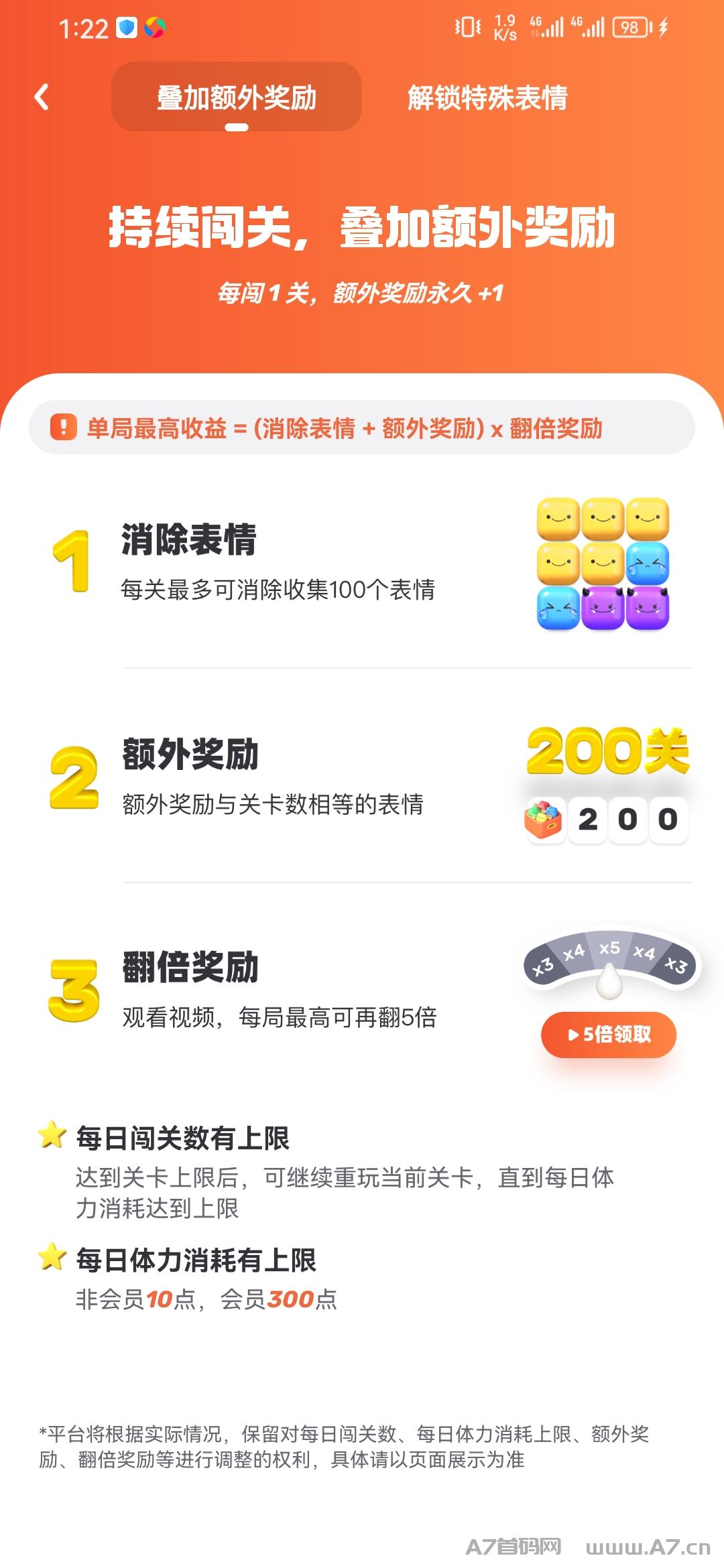 正文 表情世界全自动挂g duoduopp V评论者 /2023-03-08 10:03:43/1.97 K阅读 0308 表情世界消消乐游戏玩法,核心内容是表情,表情可以兑换金币变现,也可以留着生产奖券用奖券抽金币,在表情中有魔鬼表情可以拿来抽超级表情,想要获得魔鬼表情有两种方法,1每天闯关可以获得表情闯的越多表情越多 2在抽超级表情界面下面有赚魔鬼,在里面可以获得更多的魔鬼。表情世界闯关需要消耗体力非会员一天只能消耗10点,会员能300点,开通会员就能获得大量表情。在主界面上还有其他玩法只要运气好就能魔鬼、体力、苹果手机、黄金和零食。