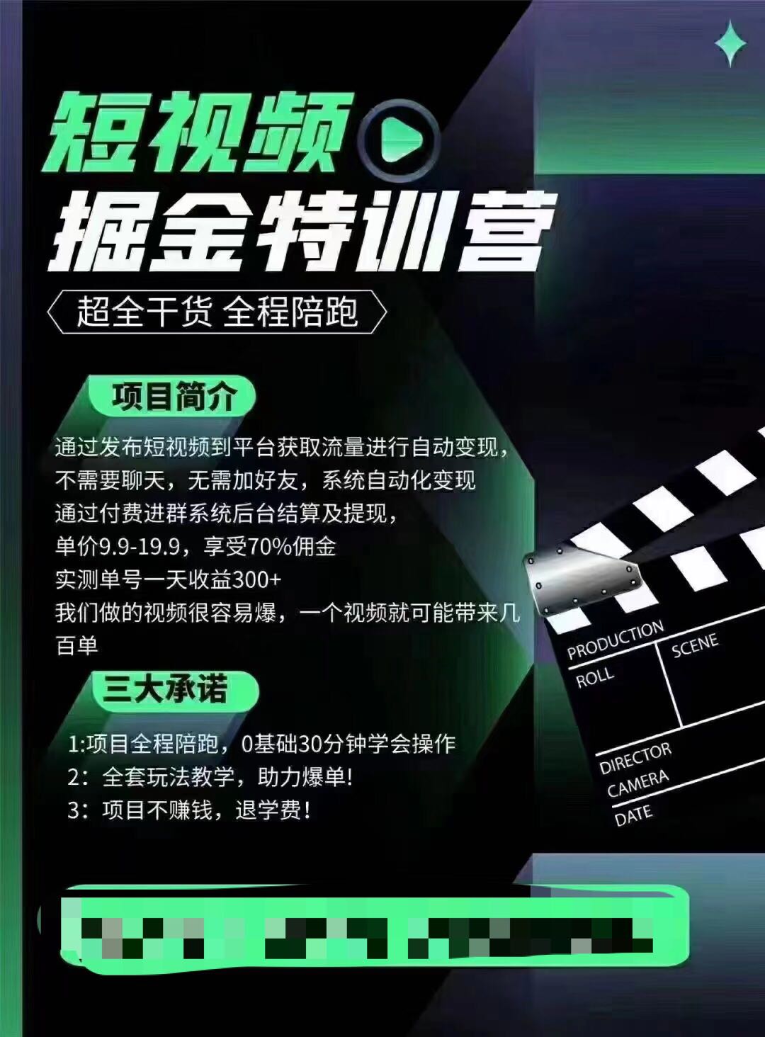 只收门槛费199,包括后期的视频剪辑、挂链接、后台注册