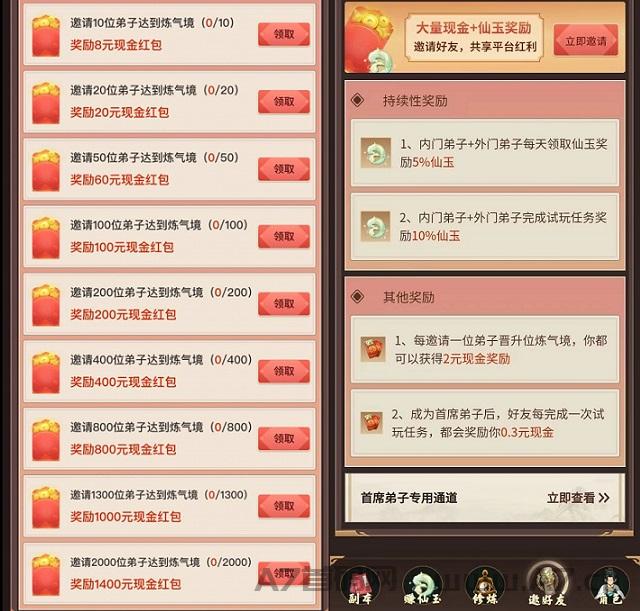 正文 指尖修真,广告,任务,爬塔赚钱,官方扶持,提现无门槛 168首码网 V评论者 /2023-03-09 09:05:13/2.6 K阅读 0309 指尖修真,一个看广告、做任务、爬塔赚钱的平台,官方大力扶持,提现无门槛秒到账。打开链接或扫码注册:http://dd.ma/eZrsttPb每天看5个广告签到的仙玉,仙玉可突破等级,可直接换红包,100仙玉10元。完成悬赏试玩可获得大量仙玉。突破境界后可参与副本闯关,每层都有随机红包奖励,楼层越高奖励越大。官方大力扶持,每推广1人突破练气境奖励2元,突破人数达到要求数量每个额外奖励1元。仙玉可交易,达到炼气境才能交易,每次最低交易20仙玉,每次交易扣除10%作为手续费。