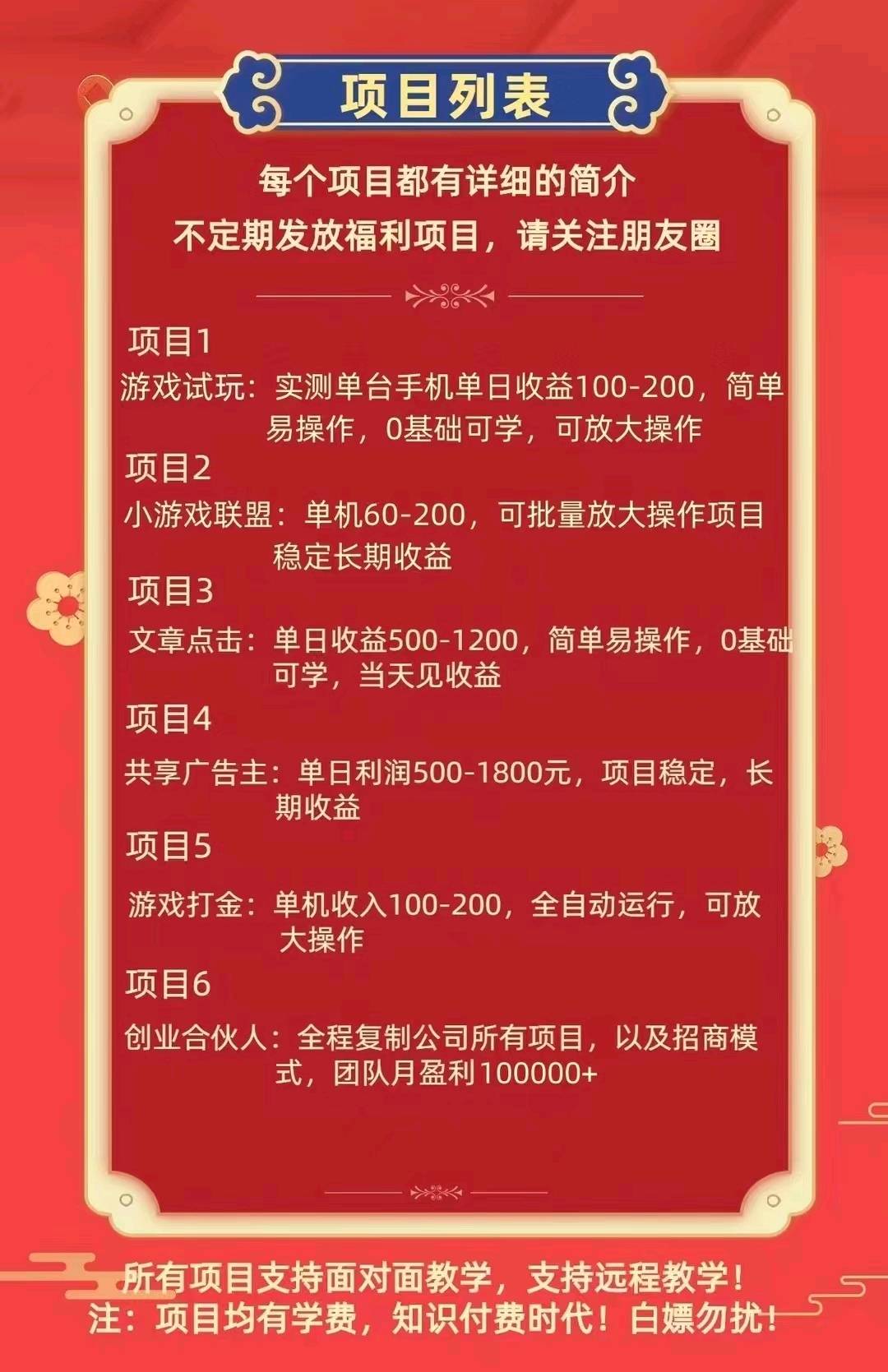 正文 小游戏看广告项目,全国寻找合作伙伴 地推接单平台找推网 V评论者 /2023-03-09 09:59:18/1.79 K阅读 0309 小游戏联盟,看广告赚收益项目介绍2023年最火爆最稳定的项目,巨大市场 一部手机收益100多,一个人可操作十台手机,单人单日收益可达1000左右,月利润3万➕,包赚不赔!可签订保本协议!专业技术人员一对一指导,项目可复制扩大,支持实地考察,实地测试,可以上门学习,赚到钱再回去扩大!合作要求时间充足有8小时左右收益利润可来公司学习,见到收益为止,单人10部手机一天1000左右费用说明白嫖勿扰扶持培训技术老师陪跑一年 资源图片: