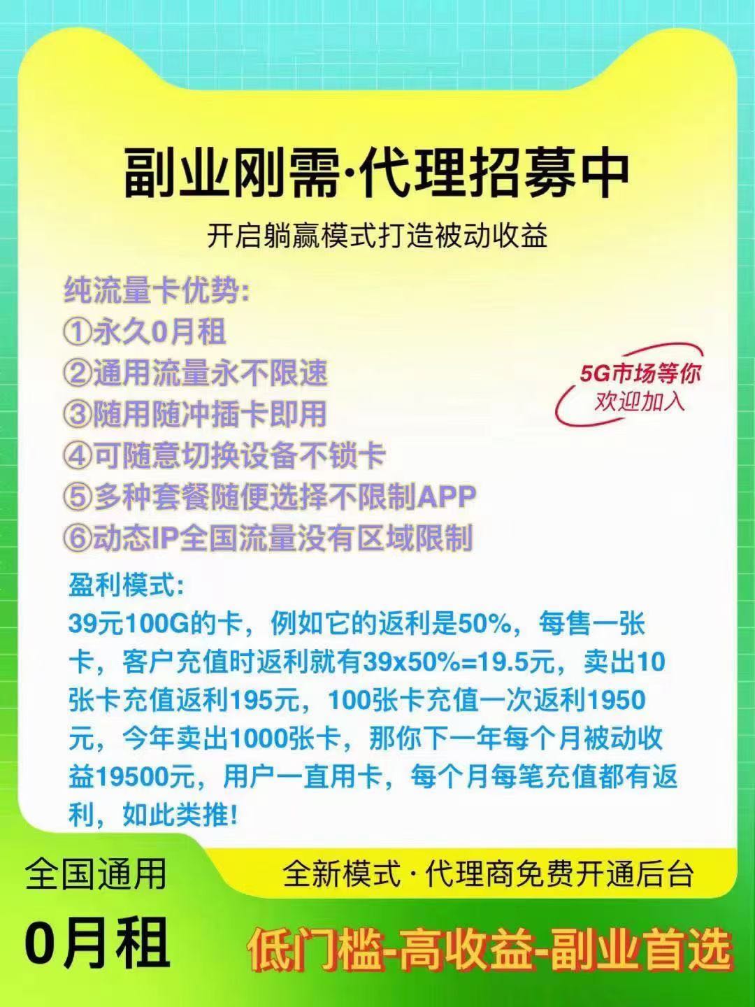 正文 提供流量卡资源,需要校园学生和劳务公司合作返利高 项目大王 V评论者 /2023-03-09 10:12:59/1.01 K阅读 0309 1.渠道类型纯流量卡全国通用,不限速不限制app,随身Wi-Fi2.品类要求无要求3.销货能力只要能销售都可以4.收费介绍没有服务费,纯佣金返利,客户只要每月都在用你每月都有钱5.结算说明随时打款6.渠道优势市场大,流量是全国通用流量特别说明长期分销,躺赚模式,前期发展后期躺赚 资源图片: