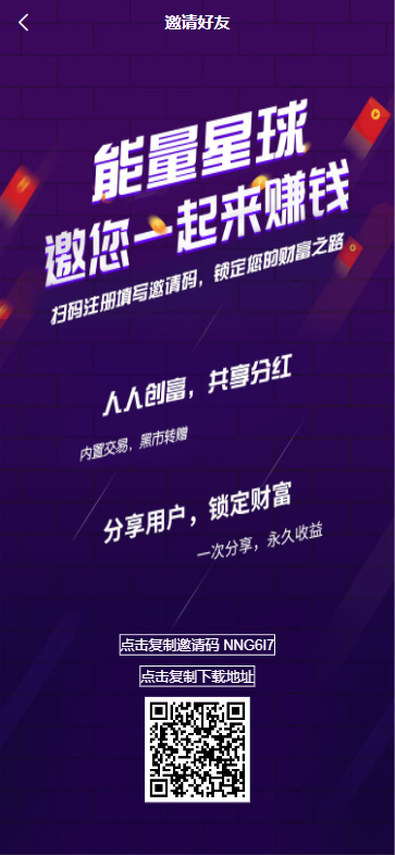 正文 【能量星球】首码发布,广告0撸每日签到得0.5m 首码团队xx V评论者 /2023-03-11 15:40:03/1.95 K阅读 0311 完成每日签到获得0.5元能量值,可在平台出售,转赠交易,平台回收。能量值越高分h越多,按当前持有能量价值1%每日分h。分h可提现支付宝秒到账。0.1元即可提现注册填写我的邀请码: NNG6I7