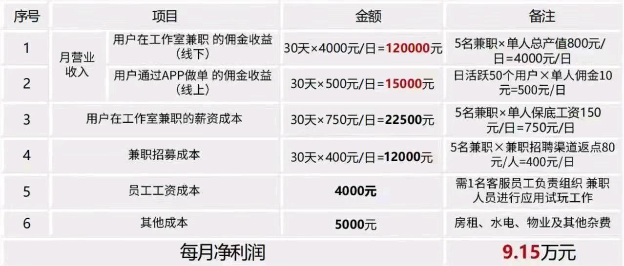 一个兼职人员每天做单40款左右,单人产值600-1000、可发展自己下线,收会员费,抽佣金